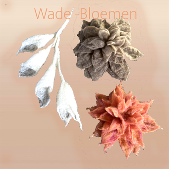 Alle Wade onderdelen zijn van superzachte 27 micron Merino wol van hoge kwaliteit en natuurlijk geverfd. De Wade-Cocon is van bio wol en verkrijgbaar in de kleurvarianten crème of licht grijs. Voor de vulling van de Wade-Harten is natuurlijke kapok gebruikt. De Wade-Sjaals en Wade-Harten & Bloemen zijn ook van 27 micron Merino wol en in meerdere verschillende kleuren en stijlen te verkrijgen.
